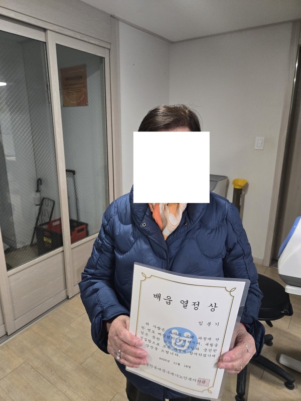 2025년 마지막 교육차 프로그램에 빠지지 않고 참여한 이용자에 한해 이수증을 전달함으로써 성취감을 제공할 수 있었습니다.