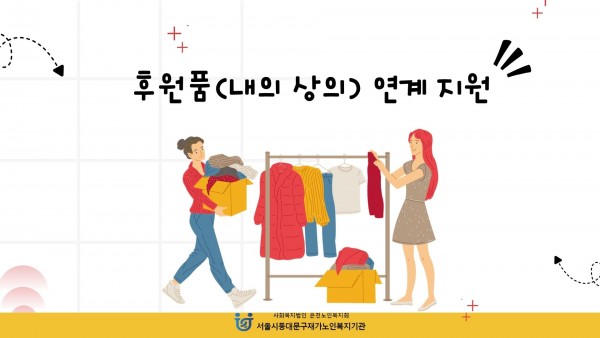 [재가노인지원서비스] 2026년 3월 서울시재가노인복지협회(내의 상의) 후원 페이지 정보 작성자 은천노인복지회 작성일26-04-06 11:34 조회40회 댓글0건 관련링크 다음글 목록 답변 본문 '서울시재가노인복지협회'로부터 내의 상의를 후원받았으며,올 겨울 이용자들이 따듯하게 보내실 수 있도록 전달드렸습니다. 다음글 목록 답변